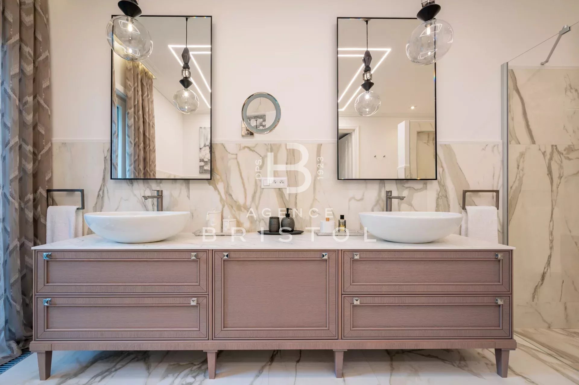 This villa in Saint-Jean-Cap-Ferrat is like almost brand new, offering high end finishes, and is sold completely furnished. It is mainly composed of: an entrance hall, large lving/dining room, independent kitchen fully equipped, 4 bedrooms including 1 master each with bathroom ensuite and cupboards, laundry room and a gym.