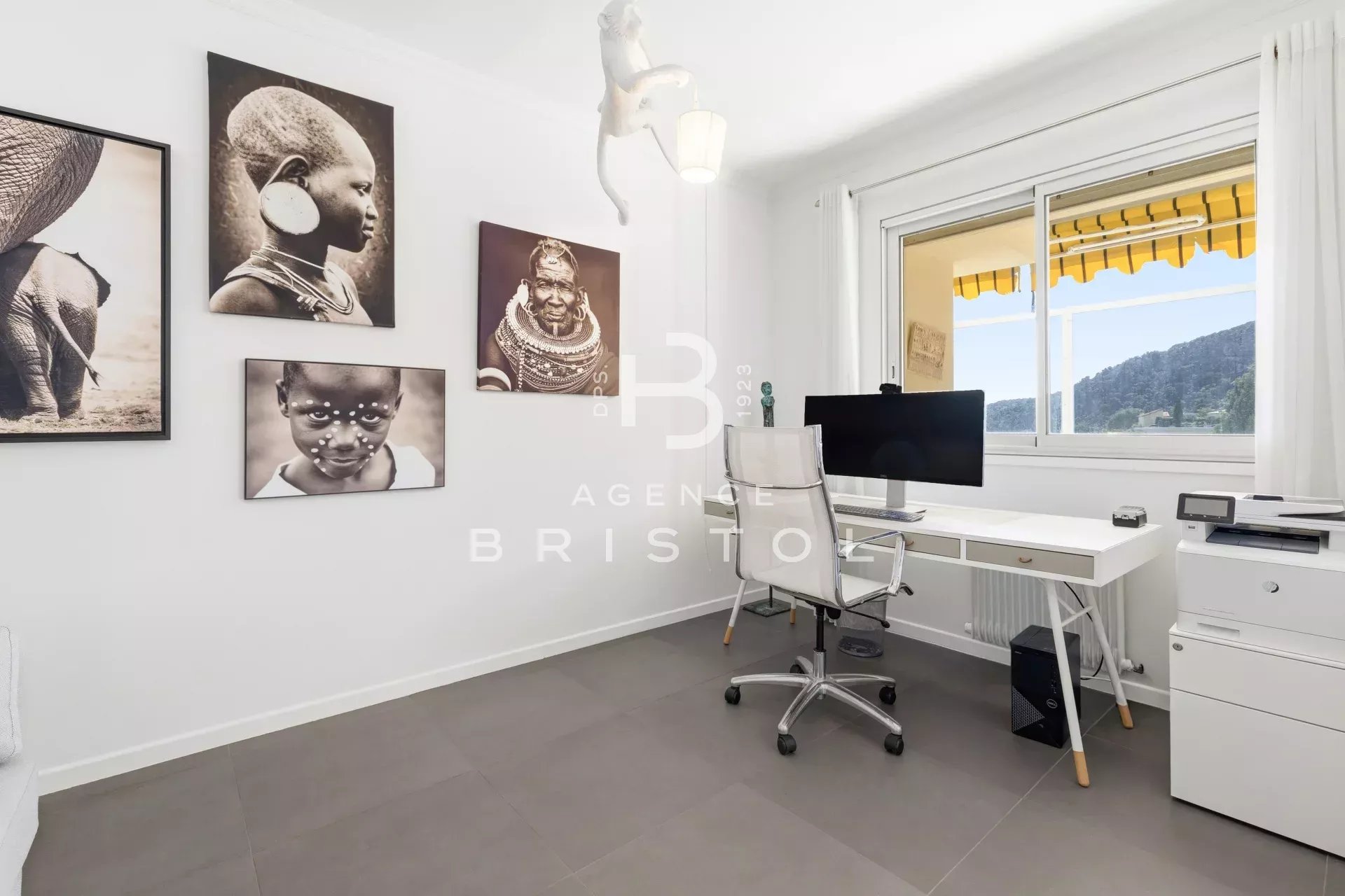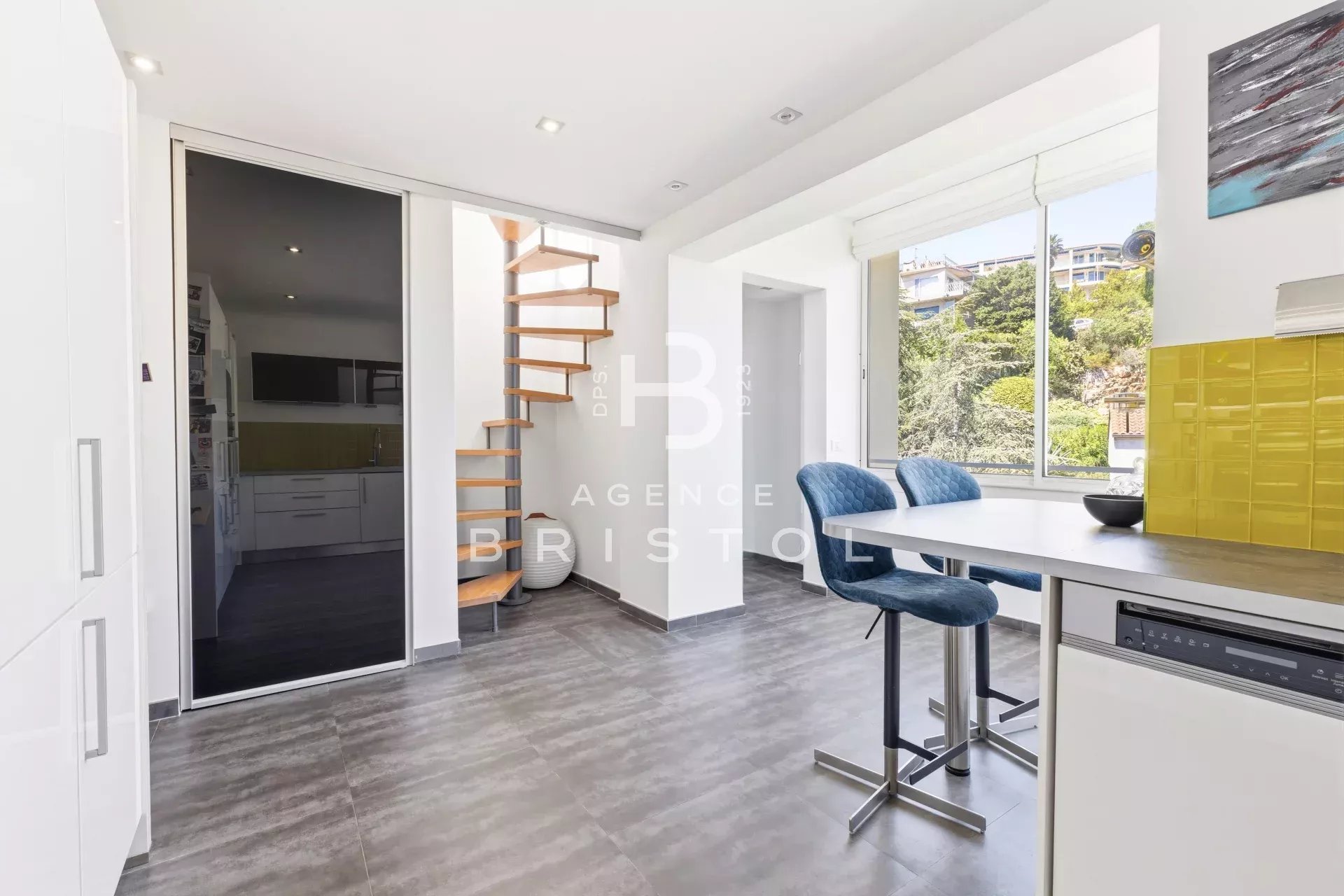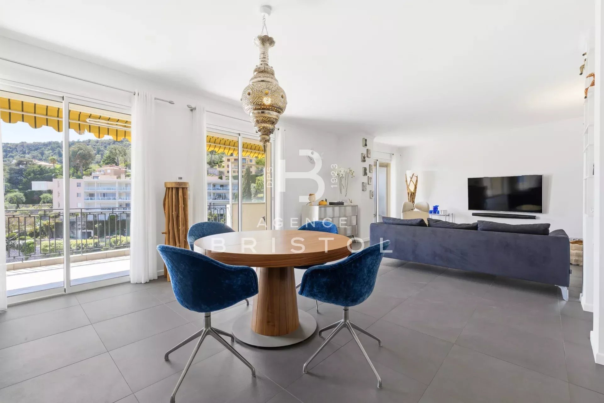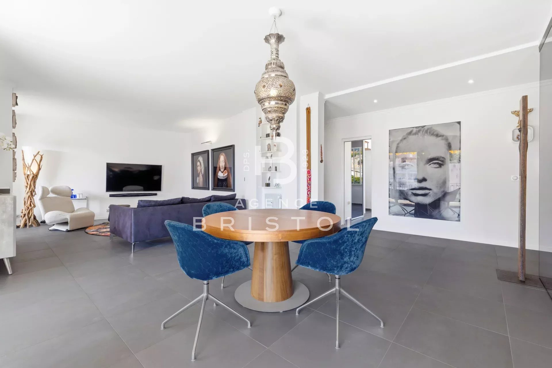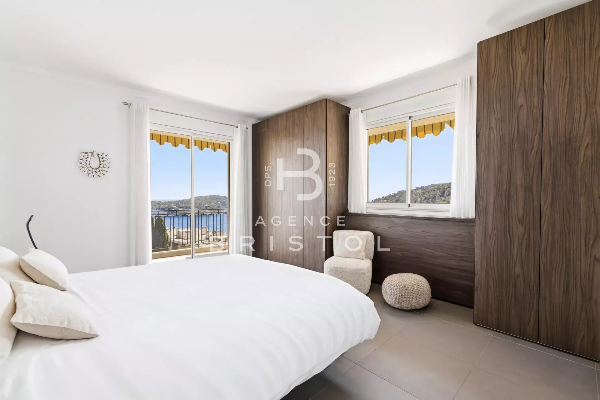 À quelques pas du centre et des plages, ce dernier étage propose un cadre de vie particulièrement privilégié, dominé par un toit-terrasse privatif de 150 m² offrant une vue panoramique spectaculaire sur la rade de Villefranche et la presqu’île de Saint-Jean-Cap-Ferrat.
