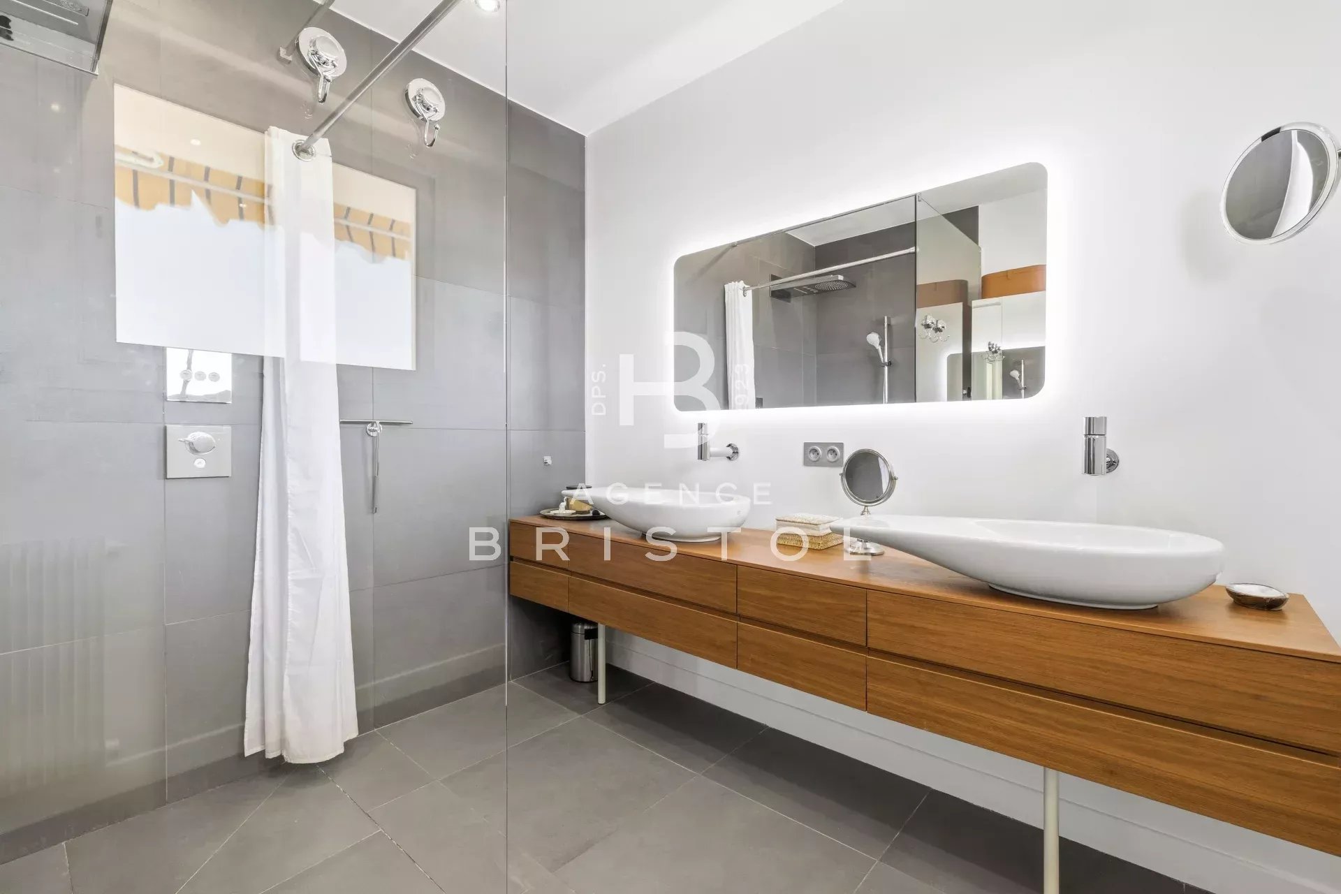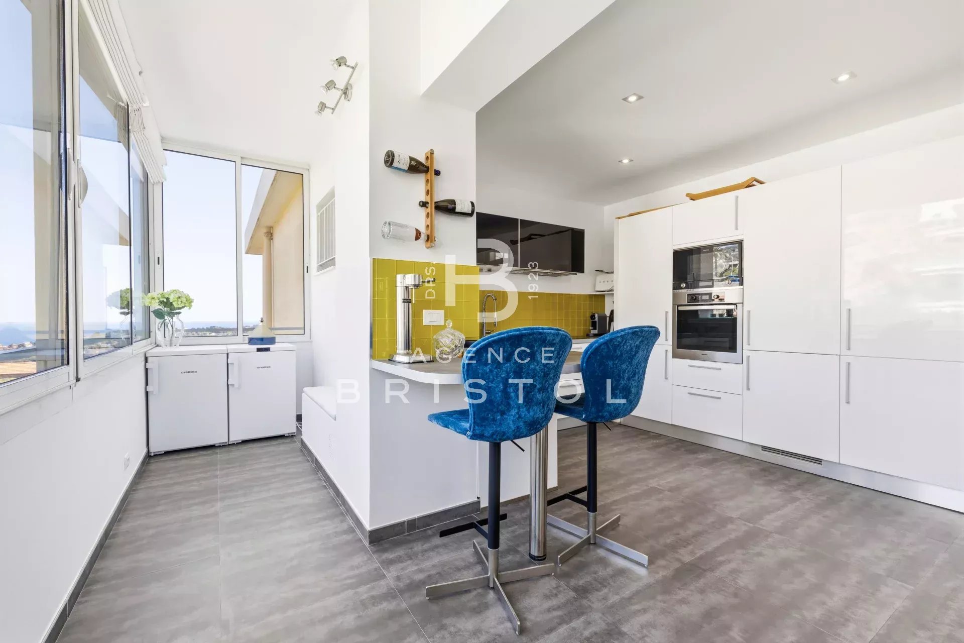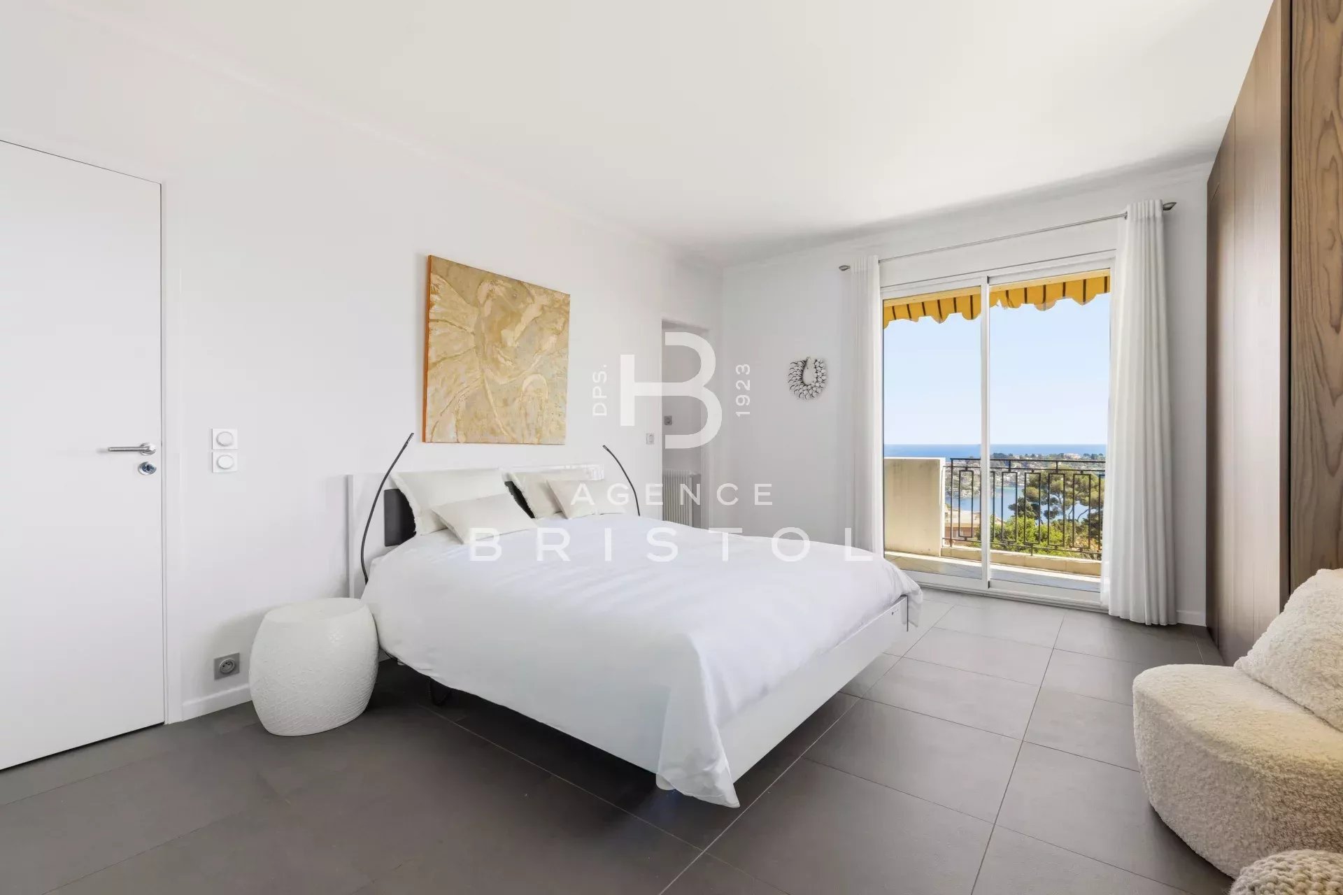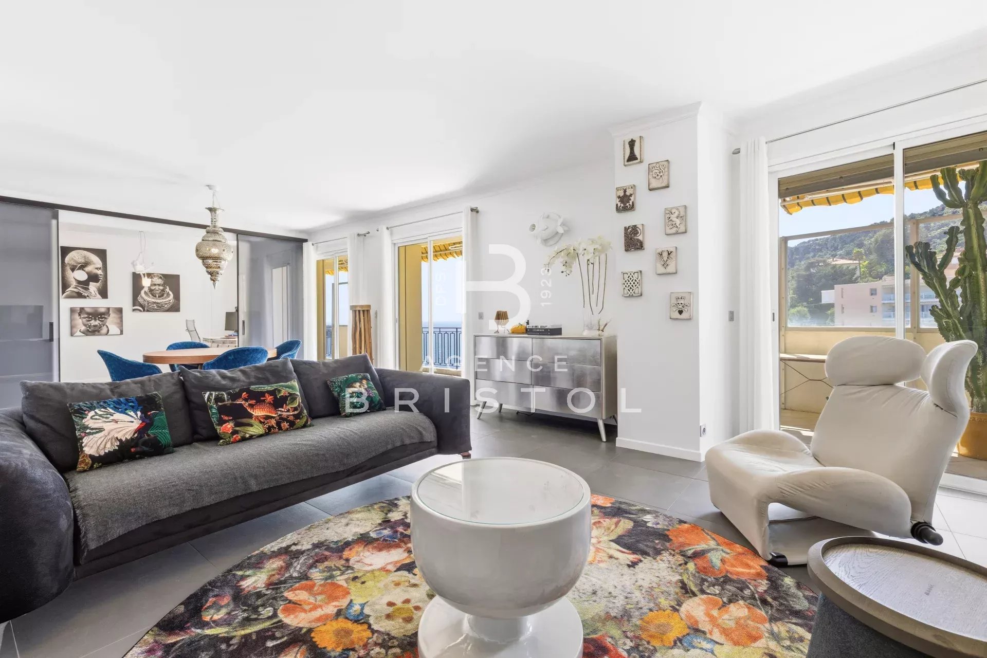 À quelques pas du centre et des plages, ce dernier étage propose un cadre de vie particulièrement privilégié, dominé par un toit-terrasse privatif de 150 m² offrant une vue panoramique spectaculaire sur la rade de Villefranche et la presqu’île de Saint-Jean-Cap-Ferrat.